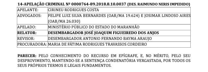 O Tribunal de Justiça confirmou a sentença no processo de estupro de vulnerável que teria sido praticado pelo prefeito. A apelação contra o processo foi desfavorável. O prefeito deverá cumprir 10 anos de cadeia e está fora do páreo político.