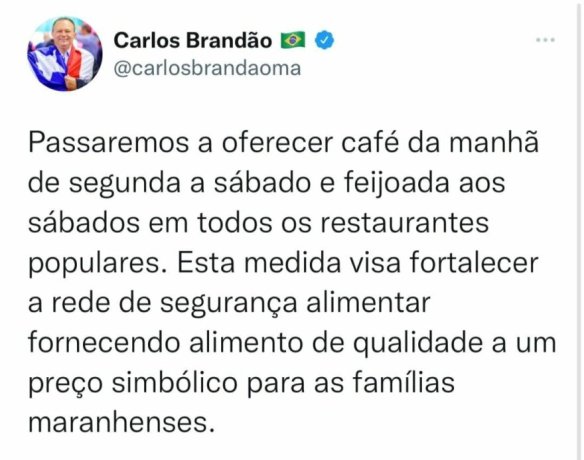 O restaurante segue orientação do Governador Carlos Brandão (PSB) anunciada em 10 de Agosto.