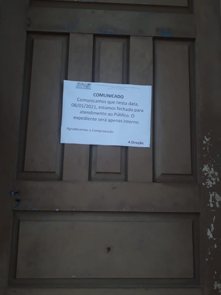 A Direção do SAAE (Sistema de abastecimento de água e esgoto) amanheceu nessa manhã (8) fechada para o atendimento ao público.
