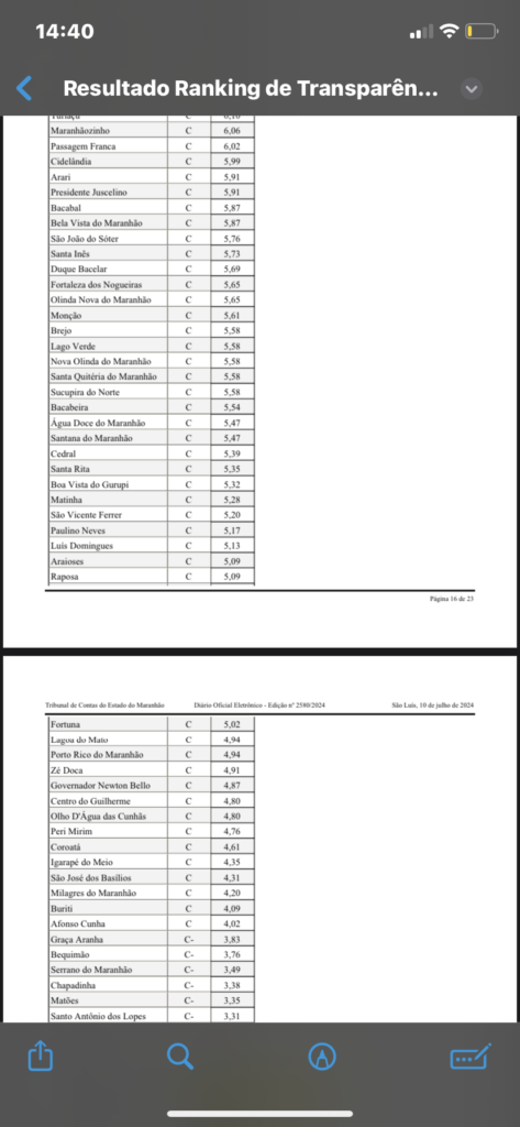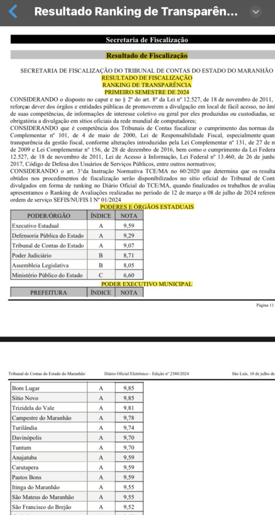 Um ranking de transparência do Tribunal de Contas do Estado do Maranhão mostra a cidade de Matões entre os piores municípios em relação à transparência nas contas públicas.