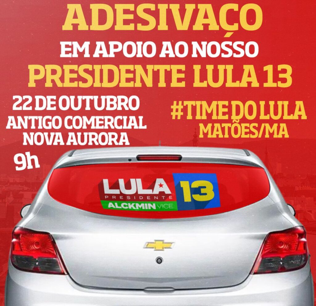 Vem aí o segundo ato popular de apoio ao presidenciavel Luís Inácio Lula em Matões. Está agendado para o dia (23) a partir das 16:00 horas, em frente a Igreja do Divino Espírito Santo.