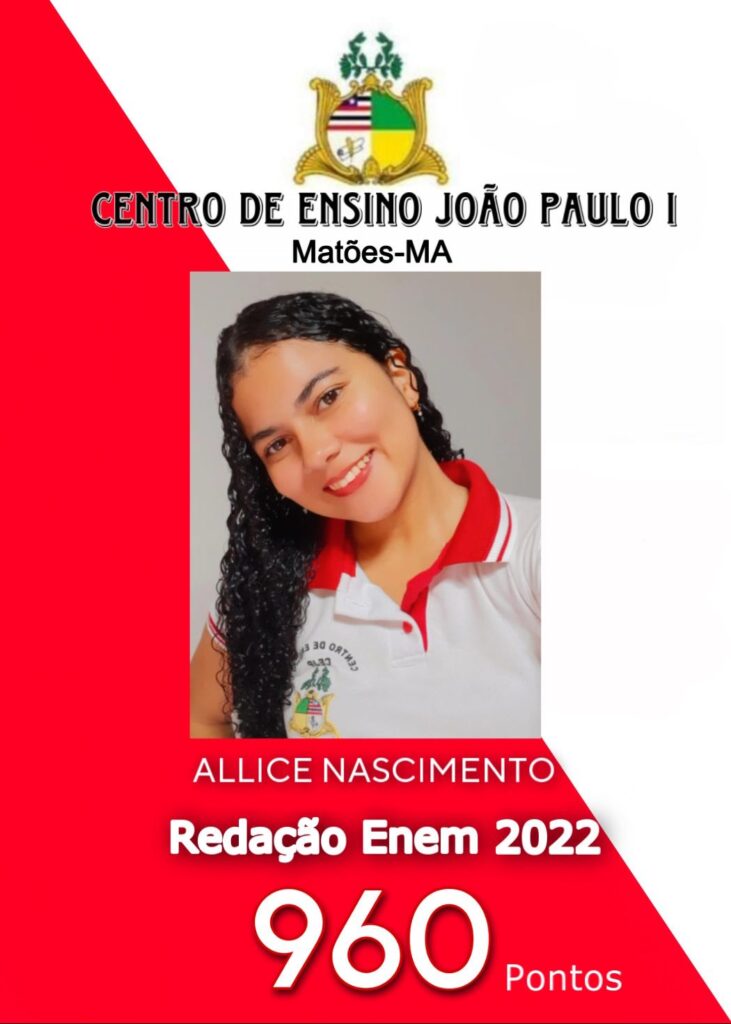 A aluna Allice do Nascimento, por exemplo, conseguiu 960 pontos na Redação, sendo a segunda maior nota da Redação da Ure – Timon, ficando atrás somente da estudante Maria Eduarda, de São Francisco do Maranhão, que atingiu 980 pontos. A Unidade Regional abrange os municípios de Timon, Matões, Parnarama, Lagoa do Mato e São Francisco.