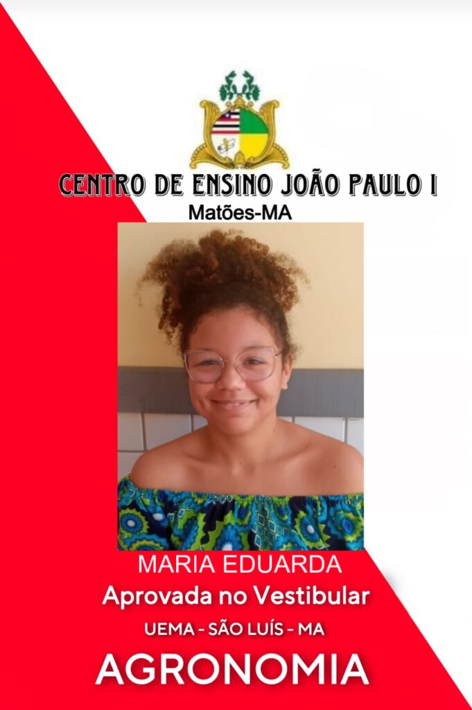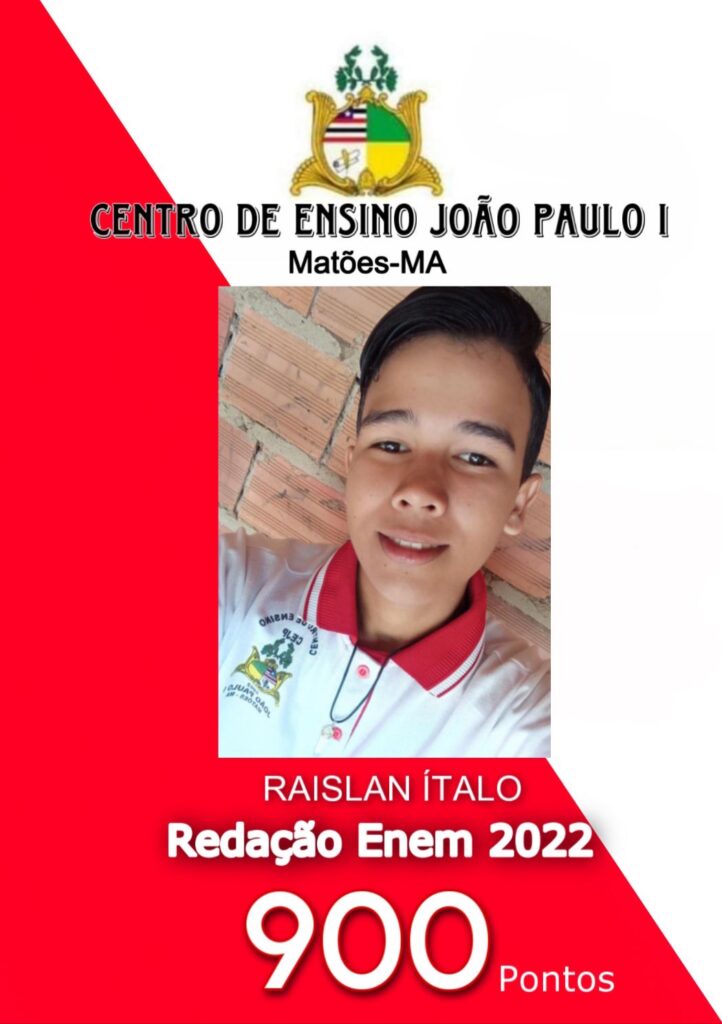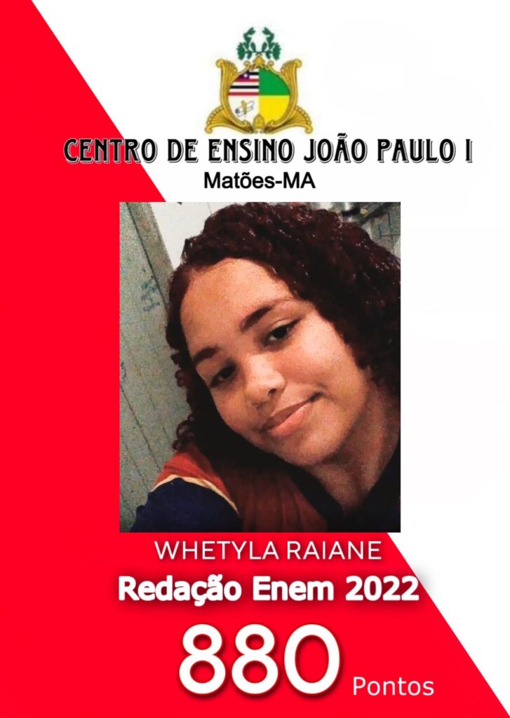Bons frutos! Alunos da escola João Paulo I, escola do Governo do Estado em Matões, conseguiram um ótimo desempenho no Exame Nacional do Ensino Médio (ENEM) de 2022.