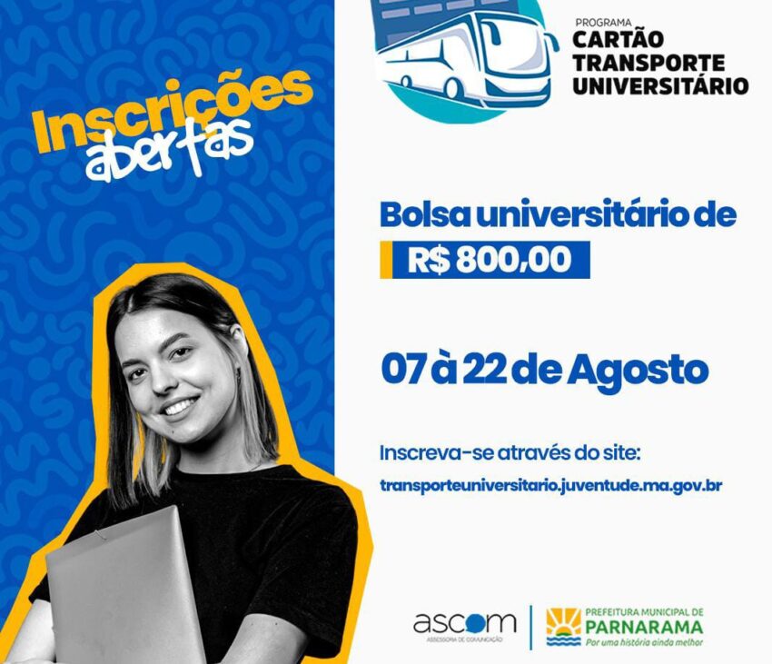 O Governo do Estado do Maranhão, por intermédio da Secretaria de Estado Extraordinária da Juventude (SEEJUV), abriu inscrições para participação no PROGRAMA CARTÃO TRANSPORTE UNIVERSITÁRIO – 2023.2, dirigido aos estudantes da rede pública e privada de ensino superior dos municípios maranhenses.