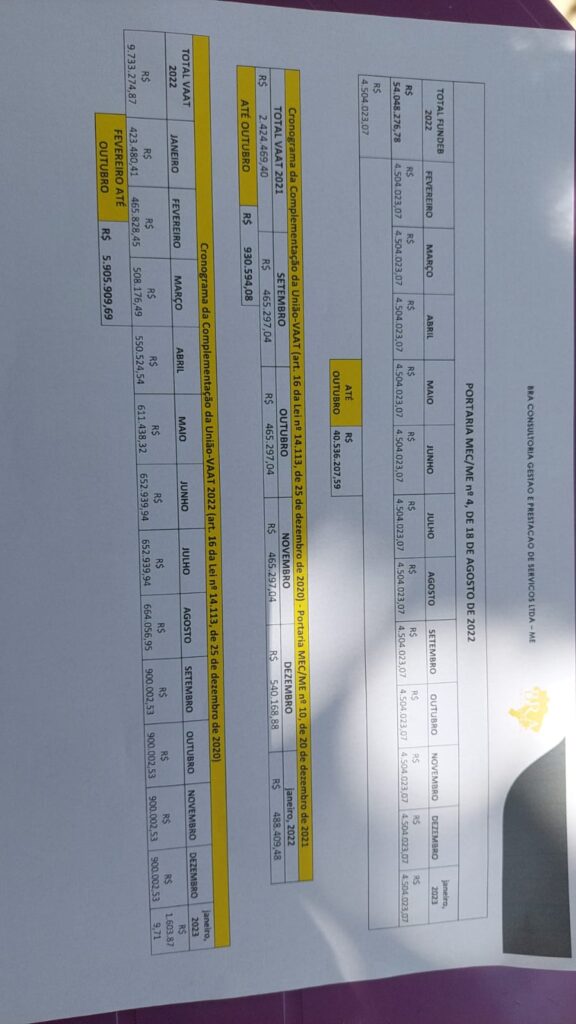 “Essas informações e números acima fazem parte do levantamento que eu presenteio a classe. Agora os professores terão em suas mãos os números, os professores poderão cobrar e pressionar o prefeito para que pague 14° salário. O prefeito só não paga se não quiser” finalizou.
