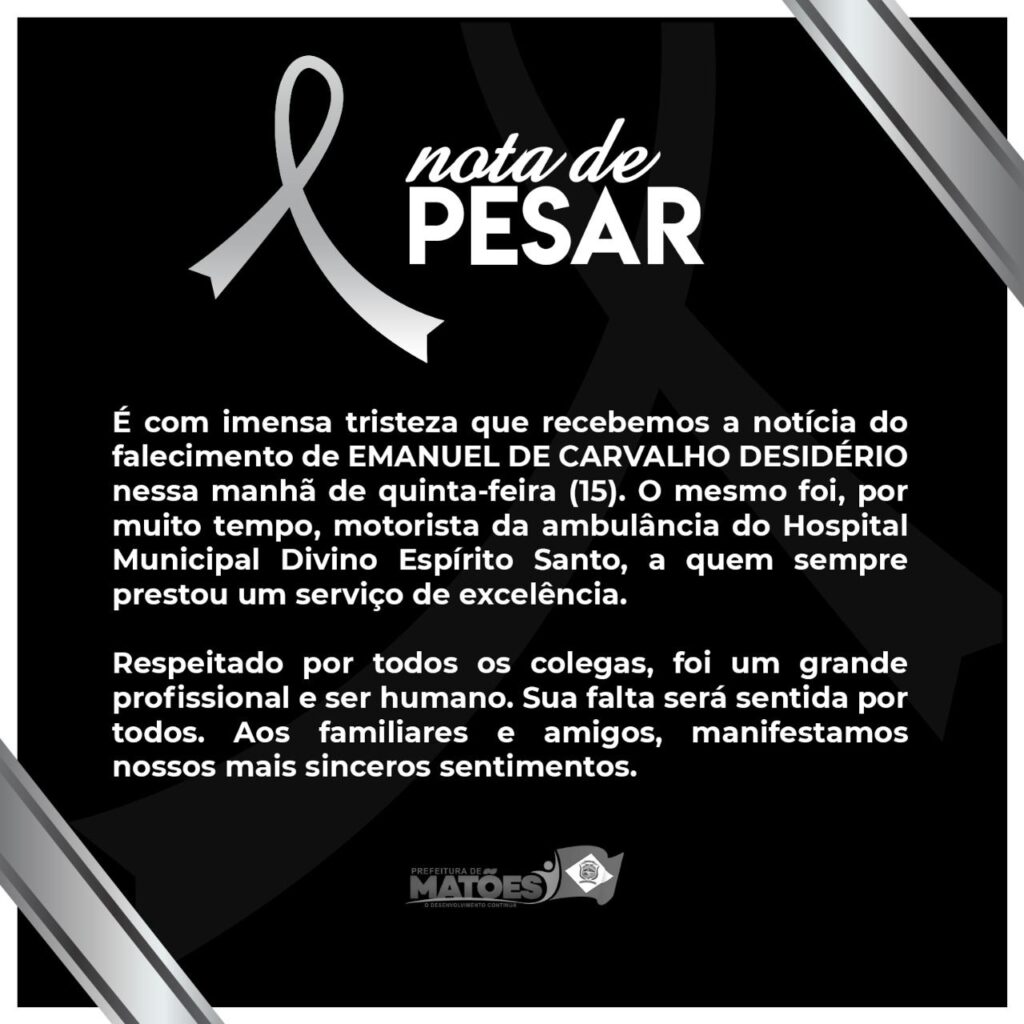 É com grande pesar que noticiamos o falecimento de Emanuel Desiderio, ocorrido na madrugada desta quinta-feira (15). Manel, como era conhecido, é filho do ex-vereador João Desiderio (In memorian) e da farmácia tá Maria Edith (In memorian). Foi motorista de ambulância da Prefeitura de Matões por muitos anos.