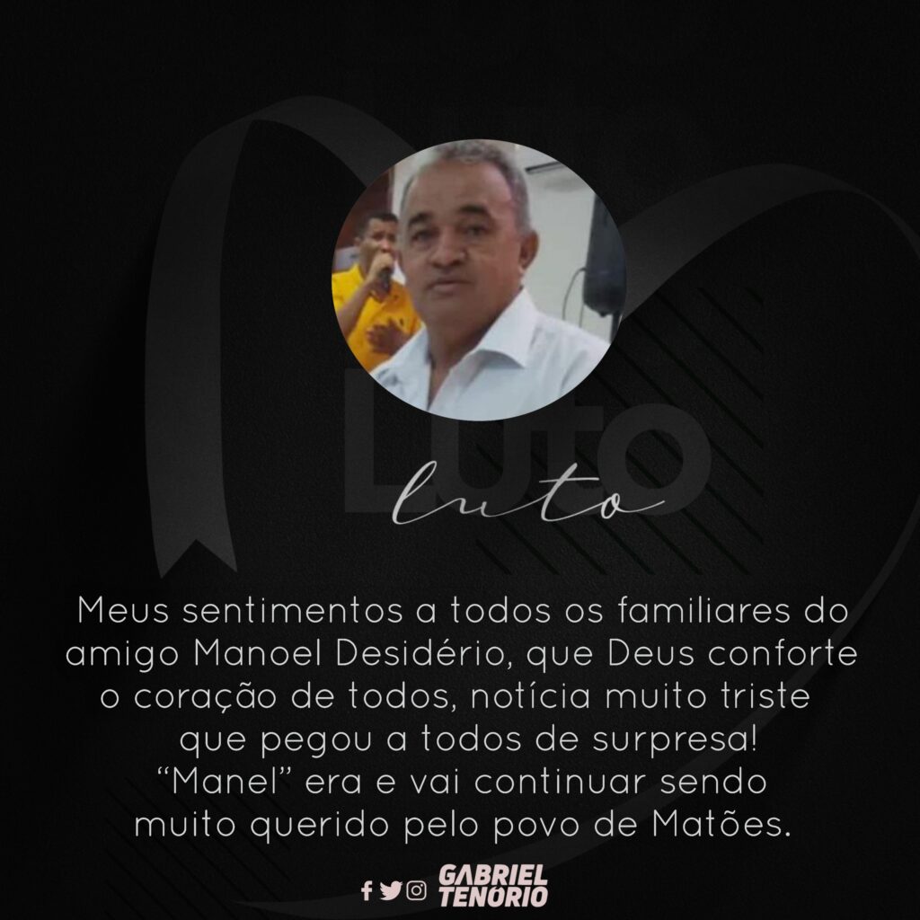 A prefeitura de Matões, o vice-prefeita Oziel Silva (Primo de Manel) e o secretário adjunto de estado de Articulação Política, Gabriel Tenório, manifestaram pesar: