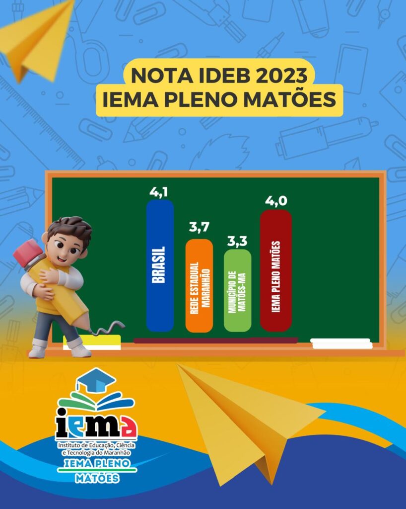 “É com imensa satisfação que compartilhamos com toda a comunidade os resultados do IDEB 2023 de nossa escola! Com muito orgulho, informamos que atingimos um desempenho que supera as médias estadual e municipal, reforçando a credibilidade e a excelência do trabalho que desenvolvemos no IEMA PLENO MATÕES. Esses resultados não apenas refletem nosso compromisso com a educação de qualidade, mas também garantem ainda mais investimentos para continuarmos avançando e proporcionando uma formação de excelência para nossos estudantes. Agradecemos a todos que, com dedicação e empenho, contribuíram para essa grande conquista! Juntos, seguimos transformando vidas e construindo um futuro melhor para nossa cidade!” Disse uma nota do IEMA.