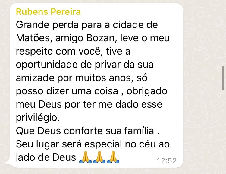 Aos seus 78 anos de idade, Bozan nos deixa em matéria. Fica a lembrança e saudades de quem era uma figura pública envolvido com o samba, música e boa gente. Cidadão, matoense e querido.