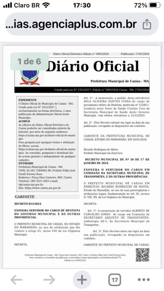 A decisão de Ricardo foi publicada no Diário Oficial do Município. Veja: