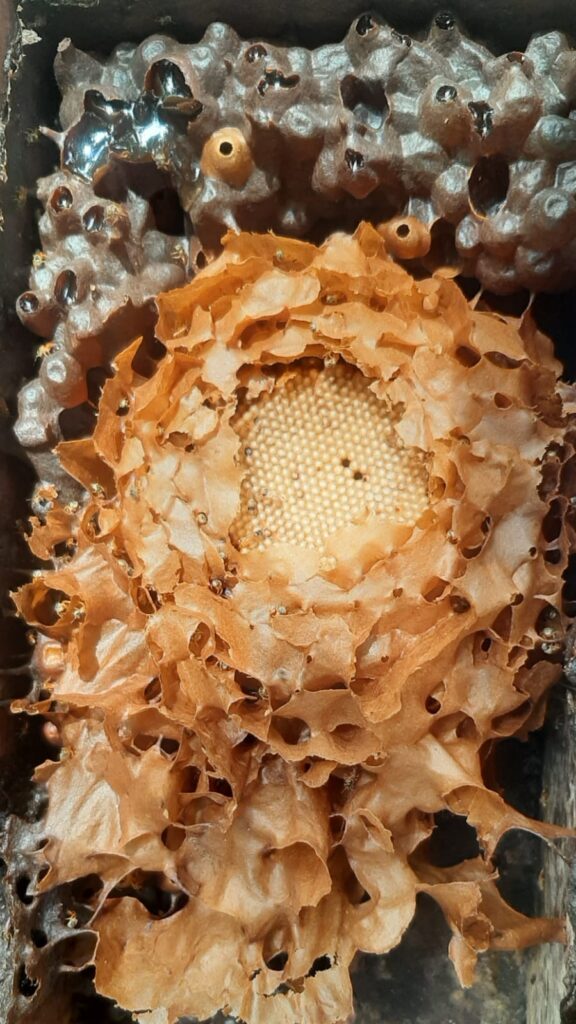Na última quinta-feira (17), a professora e ambientalista Joelma Teixeira recebeu um grupo de estudantes do curso de zootecnia do IFMA campus Caxias. Os estudantes tiveram a oportunidade de conhecer um espaço que a empresária tem em sua residência destinado a criação de abelhas sem ferrão e produção de um mel mais que valioso. Os estudantes também acompanharam de perto todas as instalações com toda a atenção da empresária, que por suas vez, esteve esclarecendo todas as etapas da criação e a colheita de mel da abelha da espécie ‘tiúba’, ameaçada de extinção.