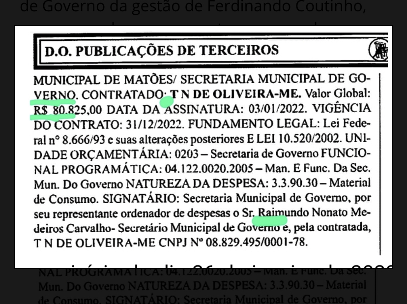 A empresa Fundo de Quintal não tem do que reclamar! Em Matões, ela é referência em prestação de notas, principalmente para Prefeitura. Contratos e notas pagas pela secretaria de saúde e pelo poderoso secretário Nonato Medeiros.