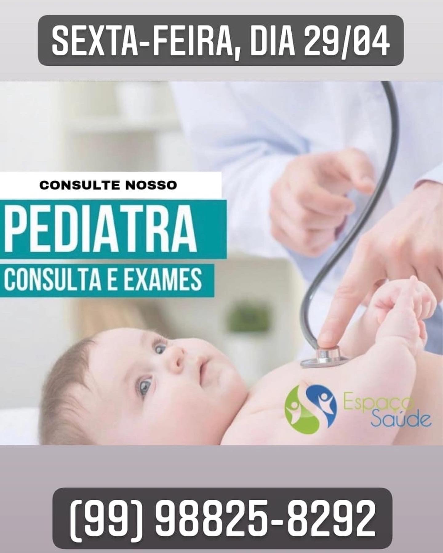 A Clínica Espaço Saúde estará realizando nsssa sexta-feira (29) e no sábado (30), dois dias de consultas e exames com médico pediatra e ginecologista.