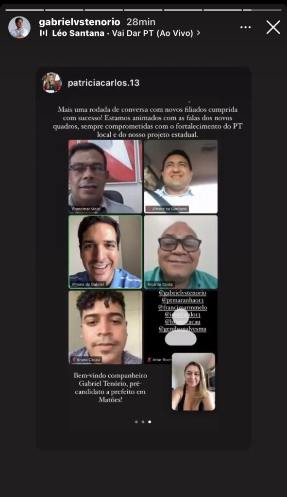 Familiarizado, o pré-candidato a prefeito de Matões, Gabriel Tenório, reuniu virtualmente com membros do diretório estadual do PT e o presidente Francimar Melo nesta tarde (26).