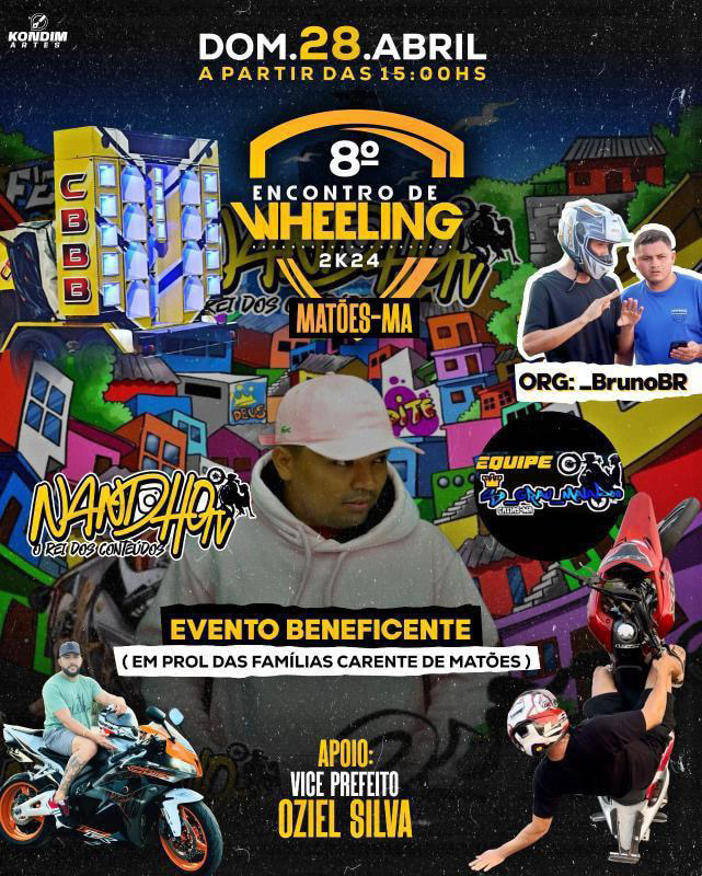 Acontece em Matões neste domingo (26) o evento beneficente de Wheeling – Prática esportiva de manobra radical conhecido popularmente como ‘Grau’.