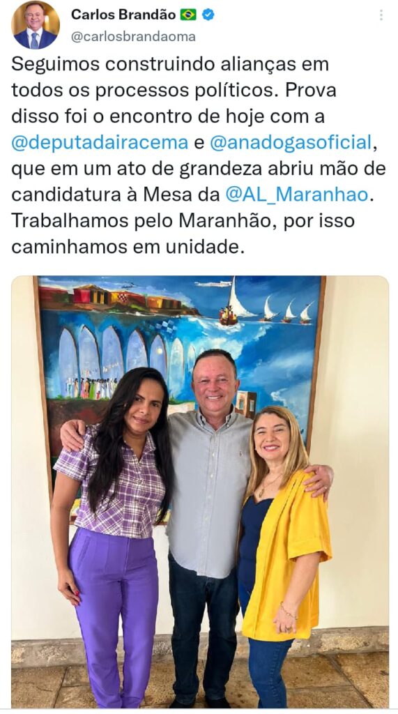 Neste último sábado (28), em uma reunião informal (Churrasco) dos deputados, o consenso ainda não era a palavra final. Em discurso, Iracema falou em conseguir unidade. E não é que conseguiu?!. A habilidade política de Iracema Vale e do Governador Carlos Brandão venceu este último obstáculo rumo a histórica eleição de Iracema como a primeira mulher Presidente da ALEMA. Ana do Gás seguirá o projeto.